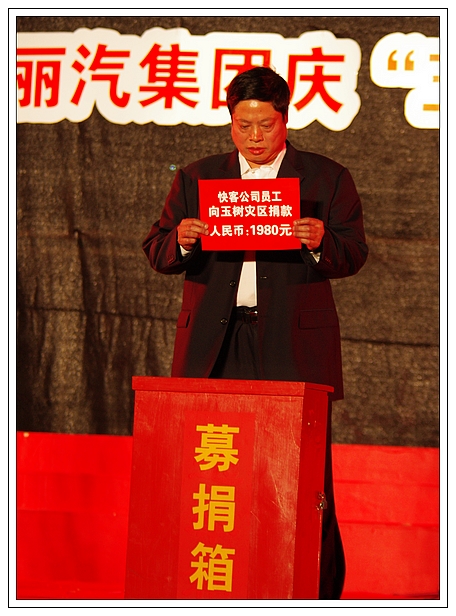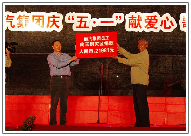 演唱會上,麗汽集團員工為玉樹地震災區進行了捐款,所募集的21981元善款轉交市慈善總會。
