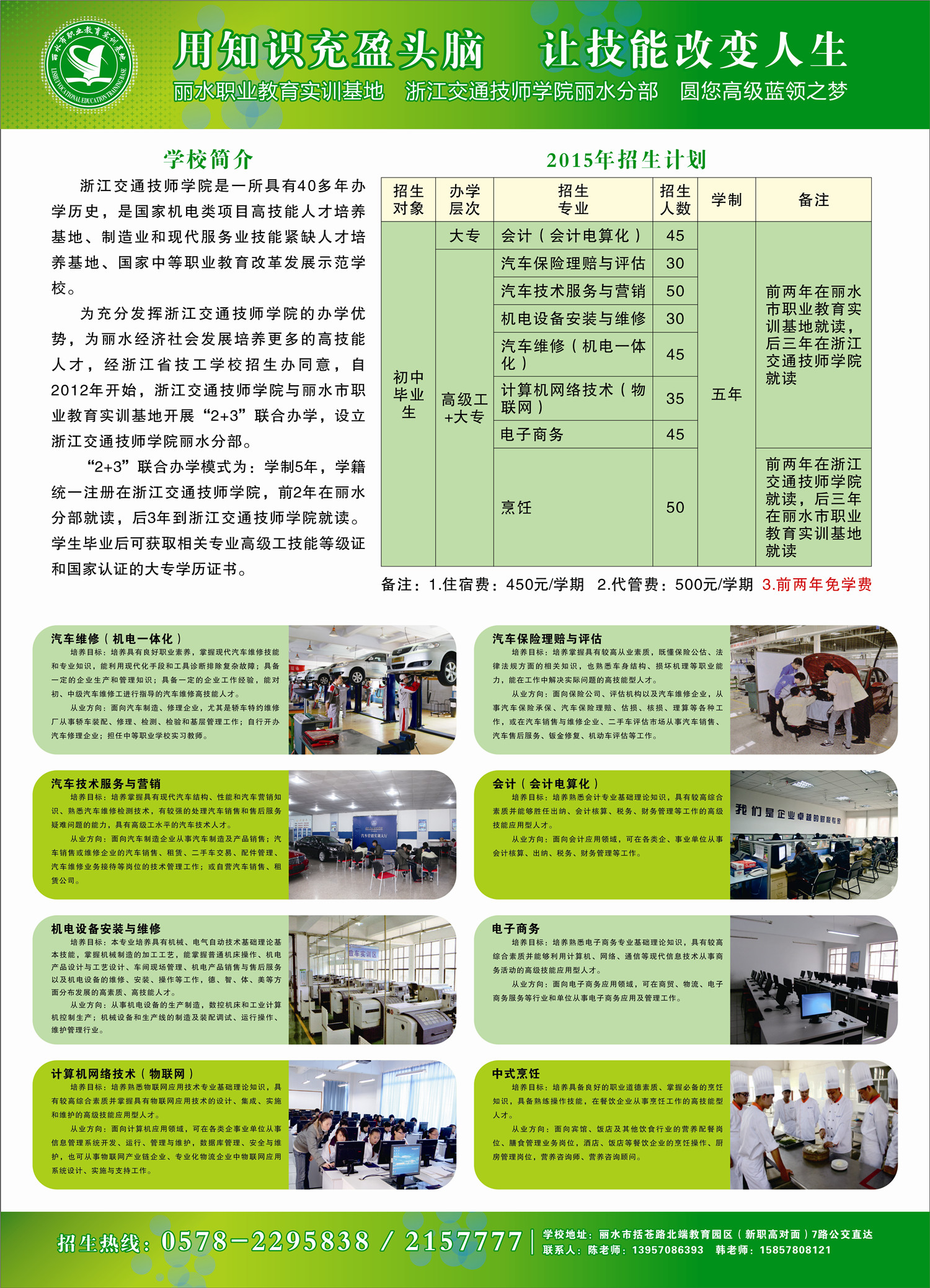 麗水職業教育實訓基地、浙江交通技師學院2015年招生公告