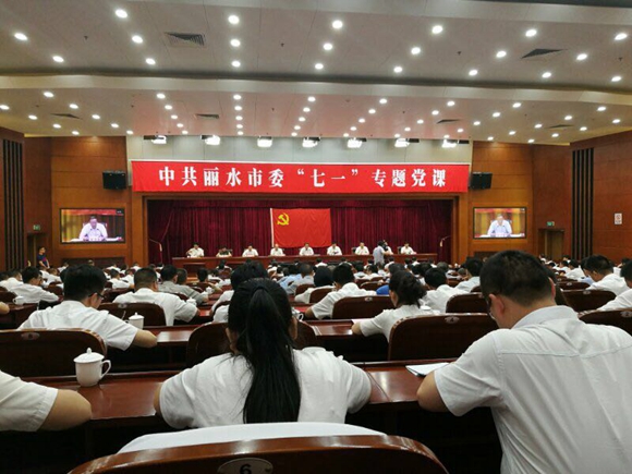 為迎接黨的96周年華誕,2017年6月27日上午,中共麗水市委組織部在市行政中心130報告廳組織開展了一次生動的“七一”專題黨課視頻會議,麗汽集團新黨員代表章雙林、莫森、葉珂應邀參加黨課學習,和現場60名余名參加儀式的新黨員在黨旗前莊嚴承諾。