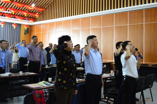 “我志愿加入中國共產(chǎn)黨,擁護黨的綱領,遵守黨的章程,履行黨員義務,執(zhí)行黨的決定,嚴守黨的紀律,保守黨的秘密,對黨忠誠,積極工作,為共產(chǎn)主義奮斗終身,隨時準備為黨和人民犧牲一切,永不叛黨”,黨委書記黃偉君帶領與會人員重溫入黨誓詞。