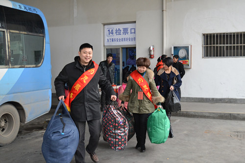 21日,隨著春節的日益臨近東、西站客流量明顯增多,兩站“春運志愿者服務隊”今天正式拉開了服務序幕。上午9:00一個個志愿者服務隊員們身披彩帶,他們有的給旅客送熱姜茶、有的幫助旅客自助購票,有的引導旅客安檢,有的在售票廳維持秩序,有的穿梭于候車旅客中間服務,“我來幫您提行李”,“大爺我攙扶您上車”,“出門要看管好行李”,一句句貼心的溫馨提示讓旅客們感到溫暖,一次次主動幫助給旅客們留下美好記憶,志愿服務給回家過年的旅客們鋪就了方便、安全、和諧的旅途。