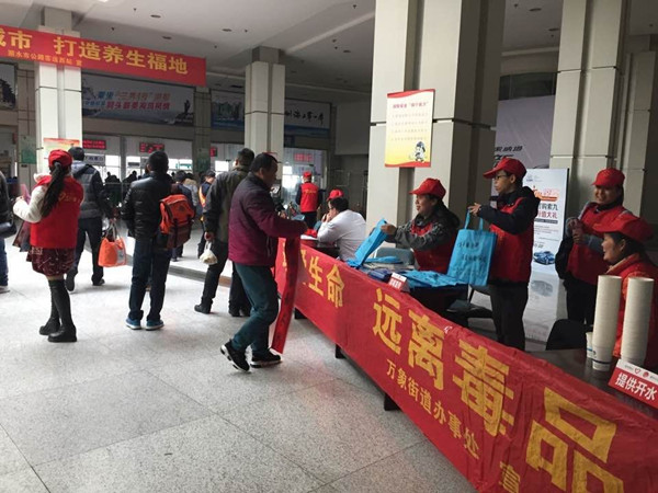 2月14日上午,蓮都區團委、蓮都區志愿者協會聯合區總工會、區衛生局、區委610辦公室、區禁毒辦、區公安分局、蓮都農商銀行、在客運西站進行“暖冬志愿行,溫暖回家路”志愿者服務。