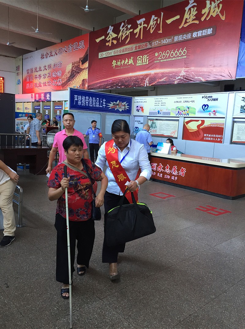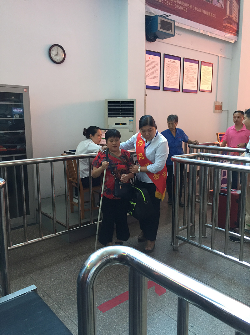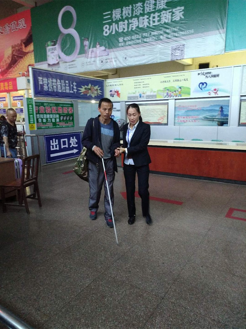 護送年老的盲人旅客上車